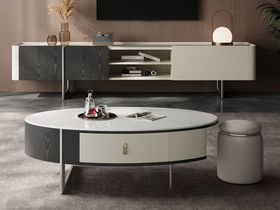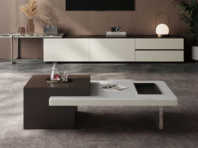 德卡图 现代简约 微晶石面+中纤板+亚克力 1.4米组合茶几