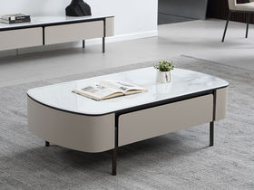 德卡图 现代简约 微晶石面+中纤板+马鞍皮+不锈钢 1.3米茶几