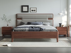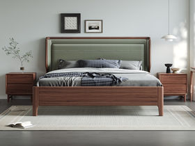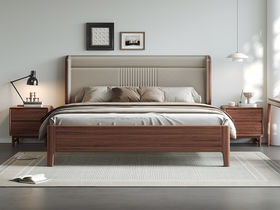 墨云阁 中古风 南美胡桃木+多层实木板+实木内架+高回弹海绵+生态皮+静音床板 胡桃色 1.8米床