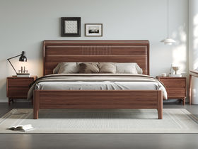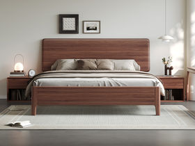 墨云阁 中古风 南美胡桃木+多层实木板 胡桃色 1.8米床
