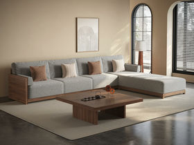 墨云阁 中古风 南美胡桃木+多层实木板+实木内架+高回弹海绵+棉麻 1+3+左贵妃 3.39米沙发