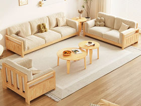 简森曼 北欧风 科技布+扶手坐板背架为橡胶木 座板下两条托方为松木 原木色 1+2+3沙发组合(不含茶几边几) 【实木拼接工艺】