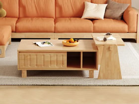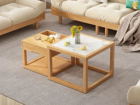 简森曼 北欧风 底板多层板 大方几面板岩板 其他为橡胶木 原木色 0.6米茶几 【实木拼接工艺】
