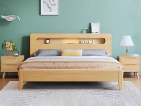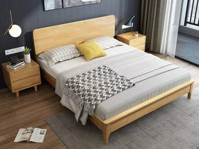 简森曼 北欧风 床头床尾脚为橡胶木 原木色 1.8米床 【实木拼接工艺】