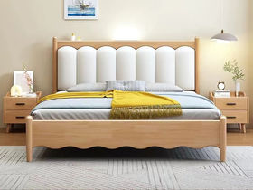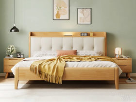 简森曼 北欧风 床头床尾脚为橡胶木靠背为皮艺填充海绵 原木色 1.8米床 【实木拼接工艺】