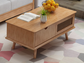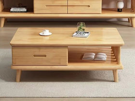 简森曼 北欧风 面板 脚为橡胶木 层板 抽屉底板侧板为多层板 抽屉尾板为松木 原木色 1.2米茶几 【实木拼接工艺】