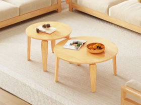 简森曼 北欧风 全橡胶木 原木色 0.8米大小圆几【实木拼接工艺】