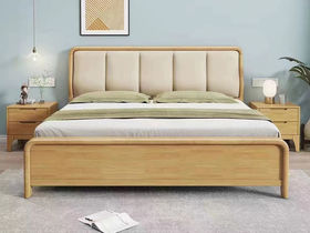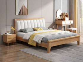 简森曼 北欧风 床头床尾脚为橡胶木靠背为皮艺填充海绵 原木色 1.8米床 【实木拼接工艺】