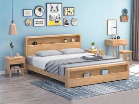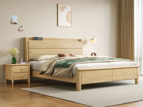 简森曼 北欧风 床头床尾脚为橡胶木 原木色 1.8米床 【实木拼接工艺】
