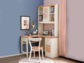 帕帕贝奇 儿童 金丝檀木+全实木 白+粉 1.2单门转角书桌