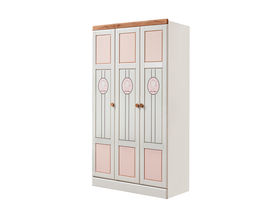 帕帕贝奇 儿童 金丝檀木+全实木 白+粉 三门衣柜