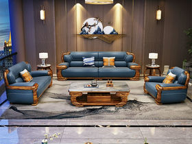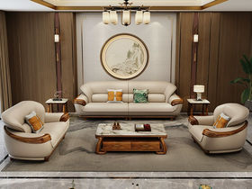 归鹊 新中式 松木内架+高回弹海绵+进口非洲喀麦隆乌金木+头层真皮 单人位+双人位+四人位 组合沙发