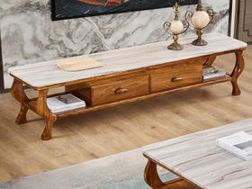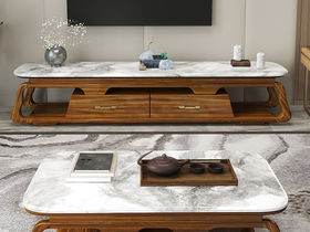 归鹊 新中式 乌金木框架+大理石台面 2.18米电视柜