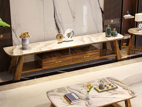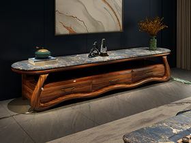 归鹊 新中式 乌金木框架+大理石台面 2米电视柜