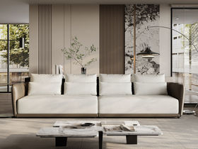 贝斯solo 设计师 网红 极简 布艺+仿皮 俄罗斯进口落叶松 优质高回弹海绵靠包 四人位 ELAN依澜3.4米沙发