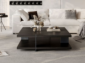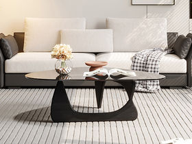 洛萨 极简 烟熏色环保板+黑色钢化玻璃 0.9米组合茶几