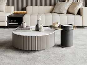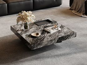 小红书系列 现代 E1纤维板贴烟熏色哑光木皮+天然大理石米洞树脂亮光漆 0.85米组合茶几
