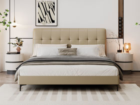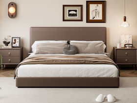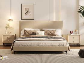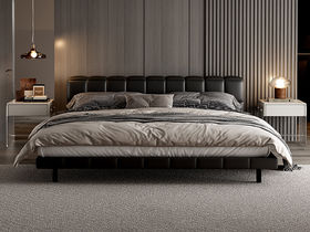 帝幔佧 现代 接触面真皮 进口松木内架 高回弹海绵 静音床板 现代简约双人床 1.8米床