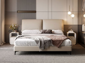 贝斯solo 设计师 网红 极简 接触面真皮 俄罗斯进口落叶松 优质羽绒靠包 静音床板 小象耳朵床 1.8米床