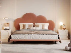 贝斯solo 设计师 网红 极简 布艺 进口松木内架 高回弹海绵 钢木排骨条 云朵儿童床 1.5米床