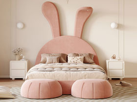 贝斯solo 设计师 网红 极简 布艺 进口松木内架 高回弹海绵 钢木排骨架 兔子床 1.8米床