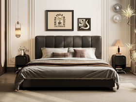 贝斯solo 设计师 网红 极简 接触面真皮 进口松木内架 高回弹海绵 静音床板 黑巧可可床 1.8米床