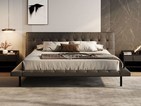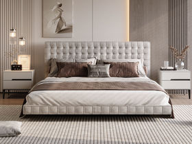 贝斯solo 设计师 网红 极简 接触面全磨砂真皮 进口松木内架 高回弹海绵 静音床板 魔方格悬浮床 1.8米床