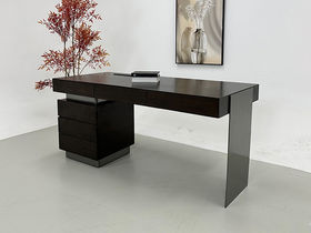 洛萨 极简 E1级中纤板进口染色木皮+玻璃+不锈钢 书桌