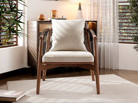 贝斯solo 设计师 网红 极简 橡木+藤编织 休闲椅