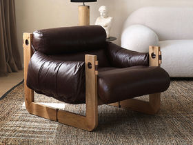 洛萨 极简 真皮 优质高弹海绵; 实木脚架 休闲椅