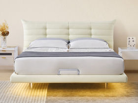 mogao摩高 极简 松木框架+实木排骨条 1.8米全皮香奈儿床