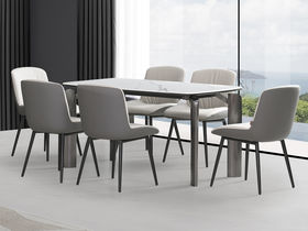 皇朝家居 现代 微晶石爵士白+碳素钢+橡木脚 长1.4米餐桌