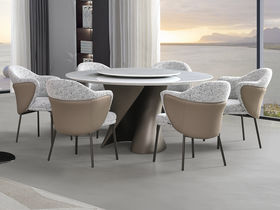 皇朝家居 现代 饰面大理石+玻璃钢喷金属漆 圆1.5米餐桌