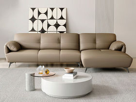 【套餐专享价】每屋优享系列 现代简约 生态真皮+高密度海绵+ 实木框架+五金脚 3.6米 3+左贵妃 转角沙发