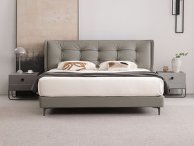 【套餐专享价】每屋优享系列 现代简约 接触面头层牛皮+非接触面仿皮+高密度海绵+实木框架+10公分钢木排骨架+五金脚 1.8米床