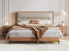 A系优选 现代简约 接触面头层牛皮+仿皮+实木框架+10公分钢木排骨架+黑色床脚+松木+黑色角码 1.8床